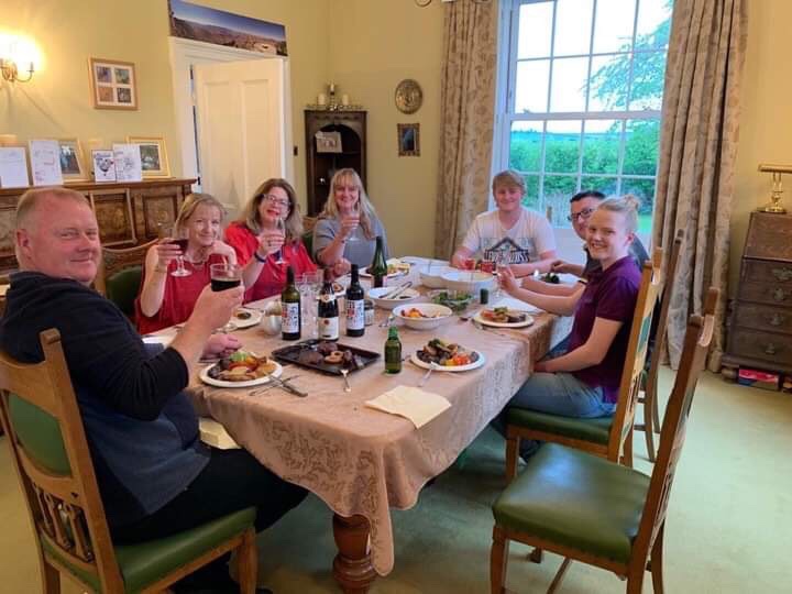 Raising our glasses to Jane’s mum and dad, who supplied some lovely wine for the evening…Jane’s boyfriend Jan took the picture and is the missing person from the table. Pictured here are Stephen, his wife, me, Jane, Stephen’s son, son in law and daughter.