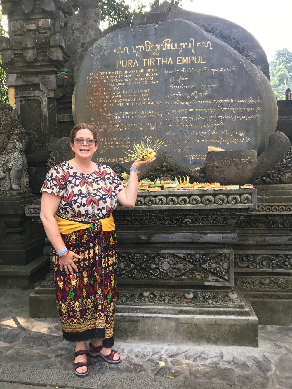 While I was in Bali we visited two Hindu temples. Ulu Watu was located on a very high cliff with a gorgeous view. A gang of monkeys live here and terrorize the visitors who walk the trail, stealing sunglasses, hats, smartphones and anything else you have on you!