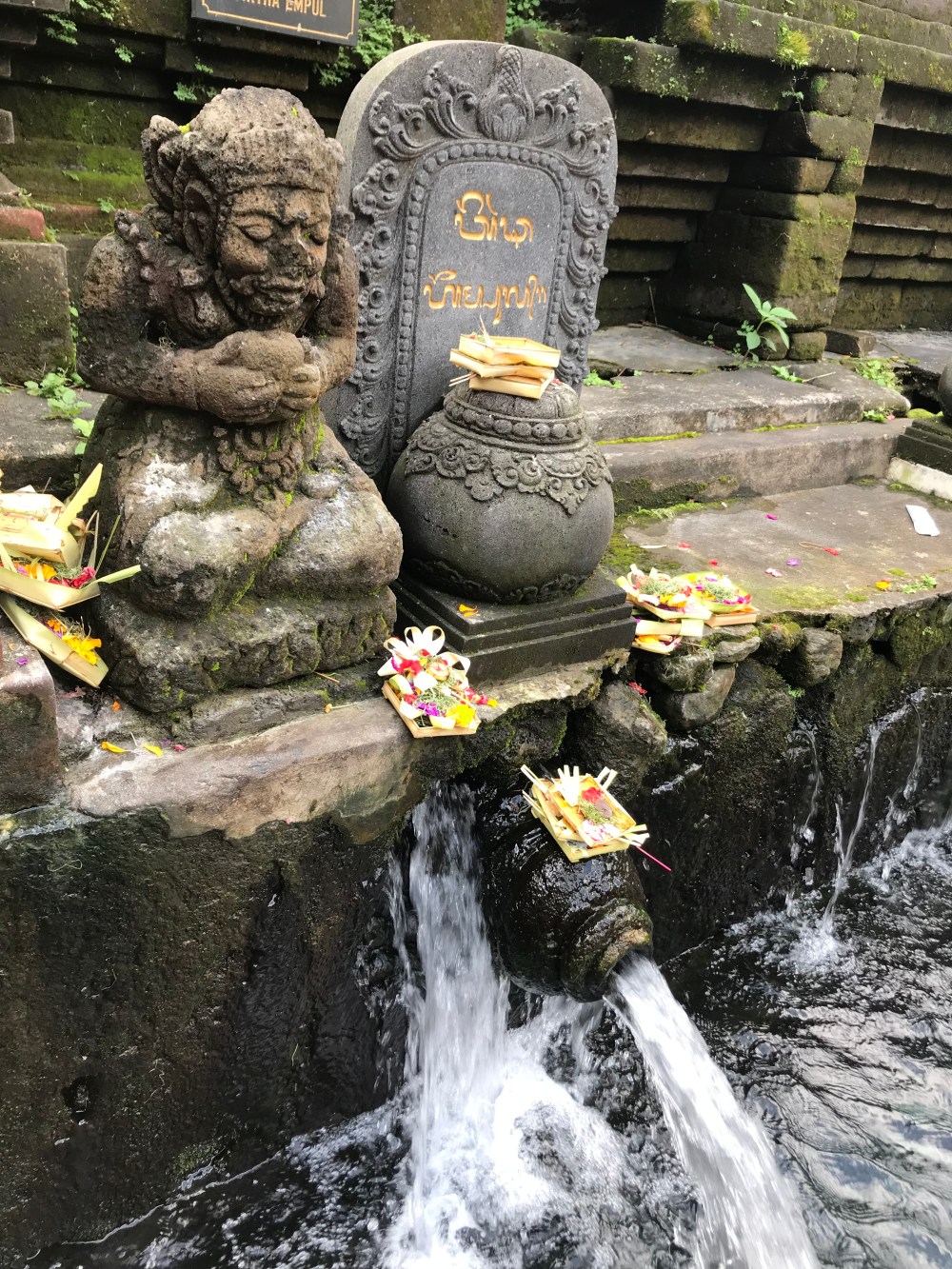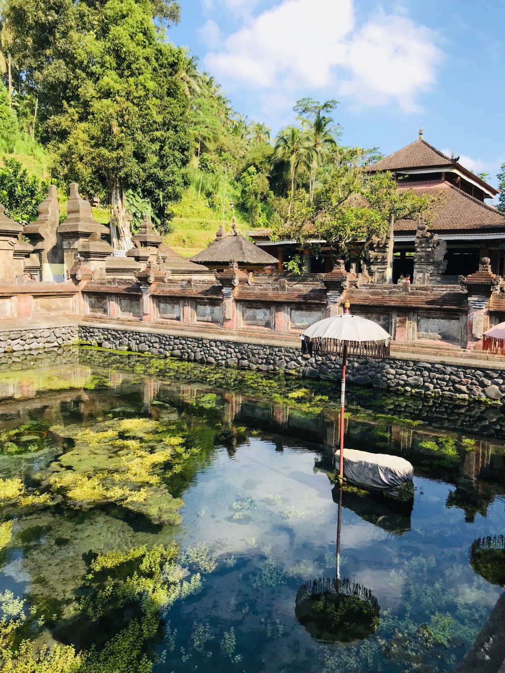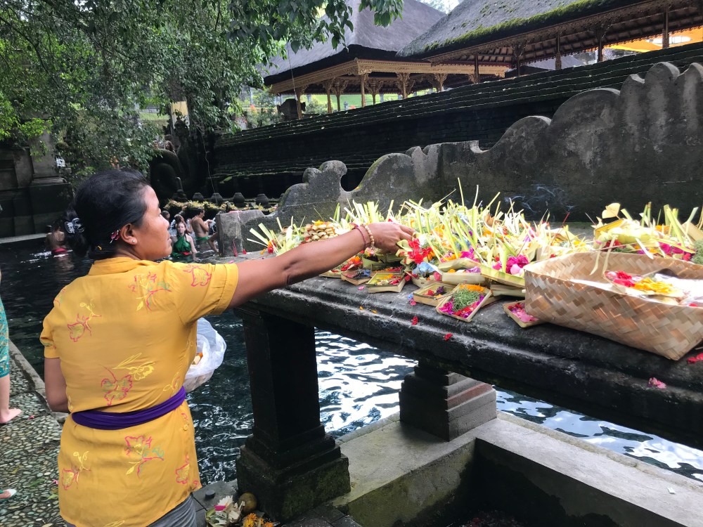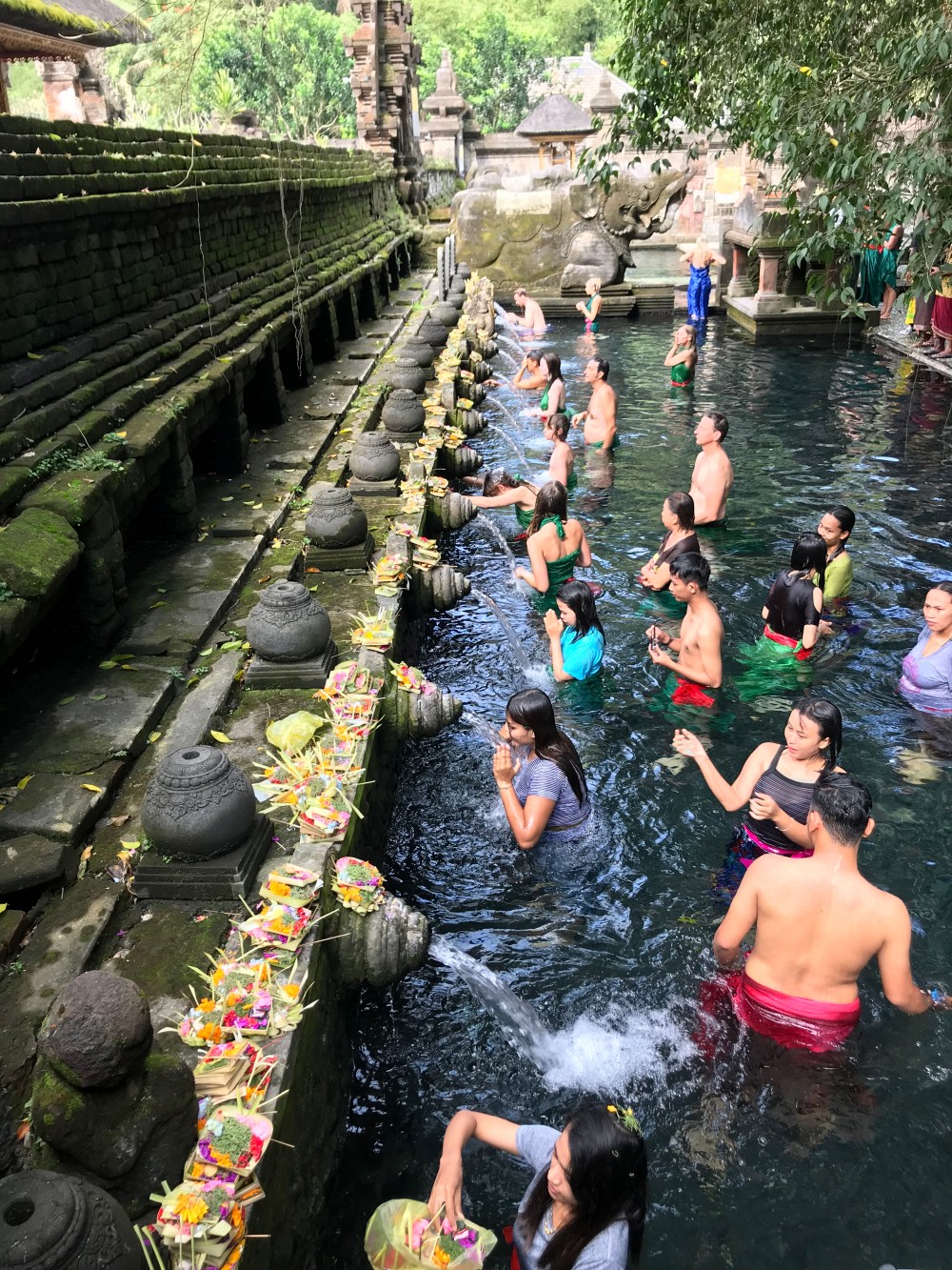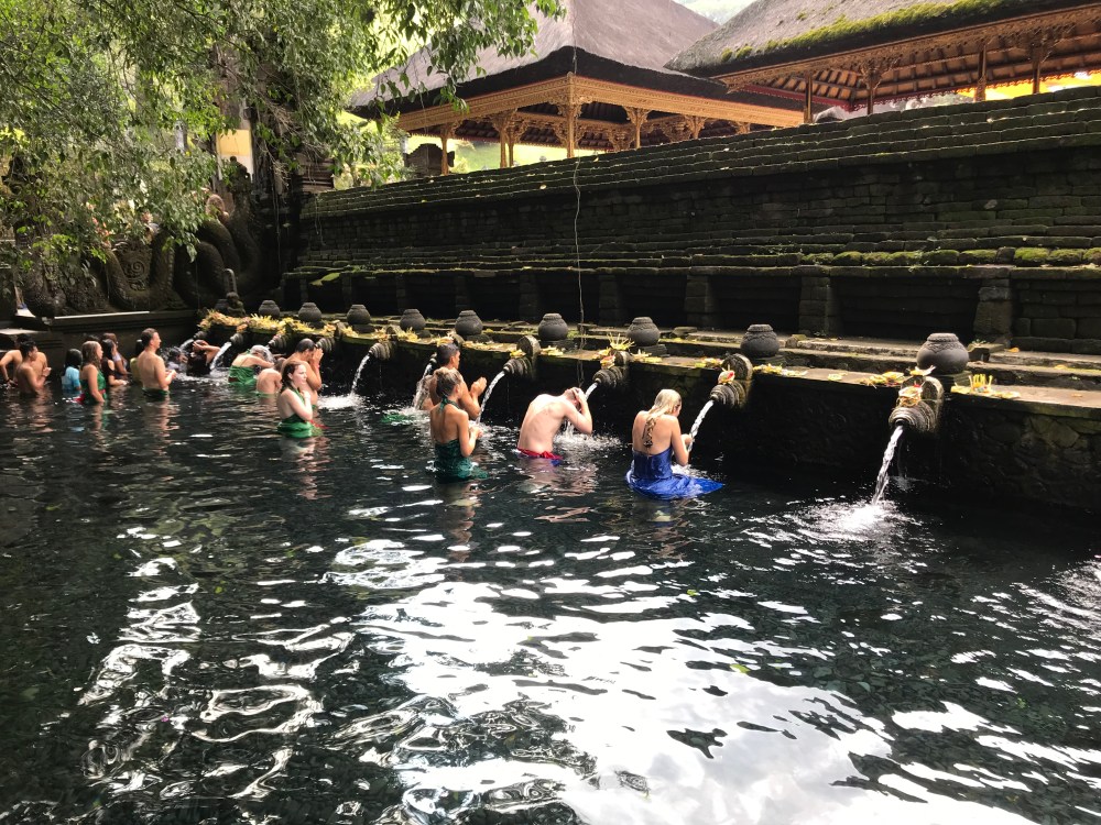 The next day in Ubud we went to the Pura Tirtha Empul (water temple) where everyone was being blessed by the waters. The first group of water fountains remove all the bad things and the second give you good blessings. We had a lovely self appointed guide to the temple.