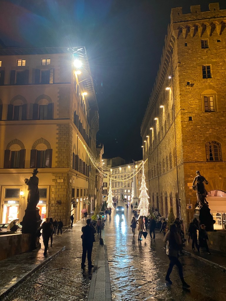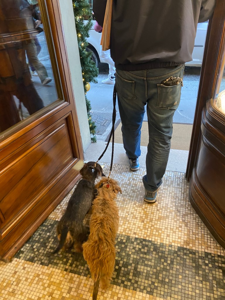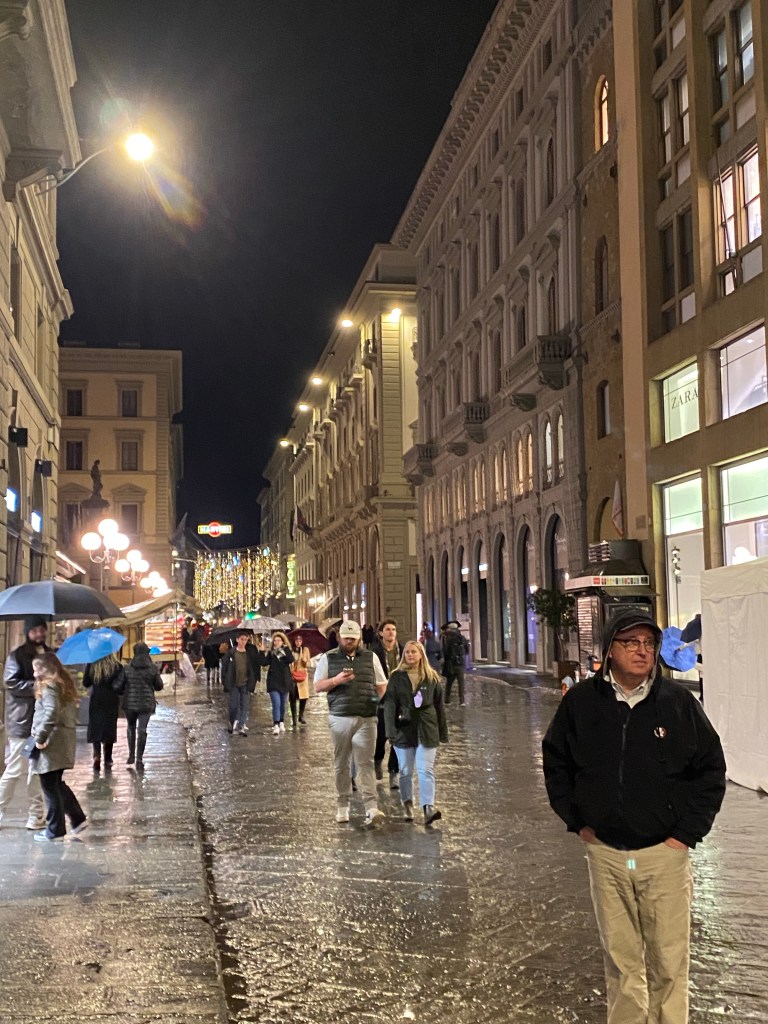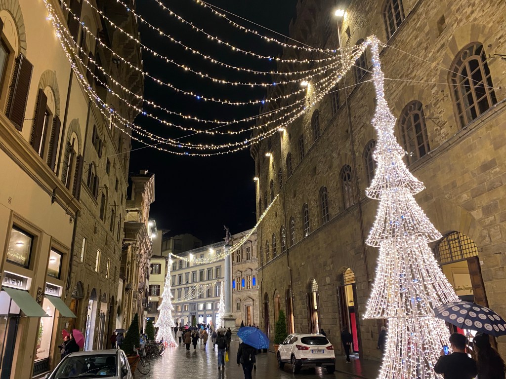 City is all dressed up for Christmas, so lovely. Lots of American families arriving for thanksgiving week with their study abroad kids. We will miss your charm, beauty and lovely doggies! We had a lovely time! Grazie!